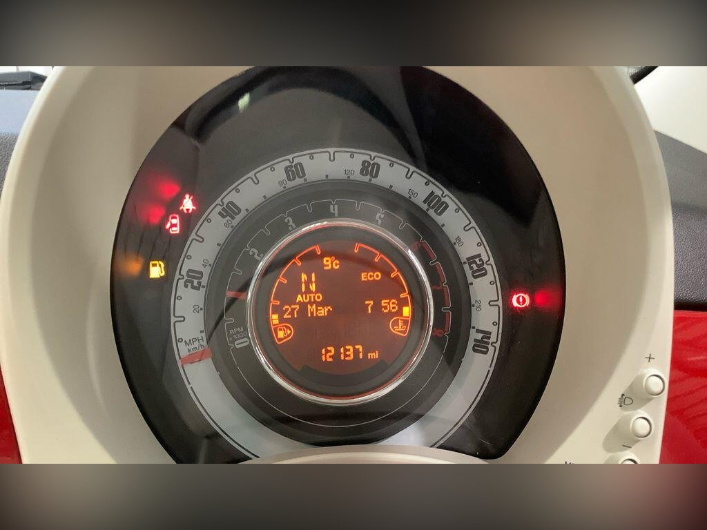 This 2018 Fiat 500 Lounge boasts exceptionally low mileage for its age, having covered just 12,137 miles, and comes with a clear vehicle history check. This stylish city car is powered by an efficient 1.2L Euro 6 petrol engine, making it a cost effective choice. The Lounge trim level includes a fixed glass roof with a sunblind, offering a bright and airy cabin experience. For comfort and convenience, it features air conditioning and front seats with a memory function. Parking is made easier with rear parking sensors, and the 5in touchscreen radio provides entertainment and connectivity options including AUX, USB, DAB, and Bluetooth.